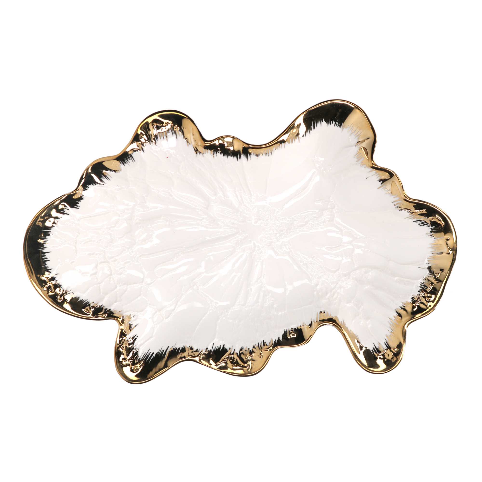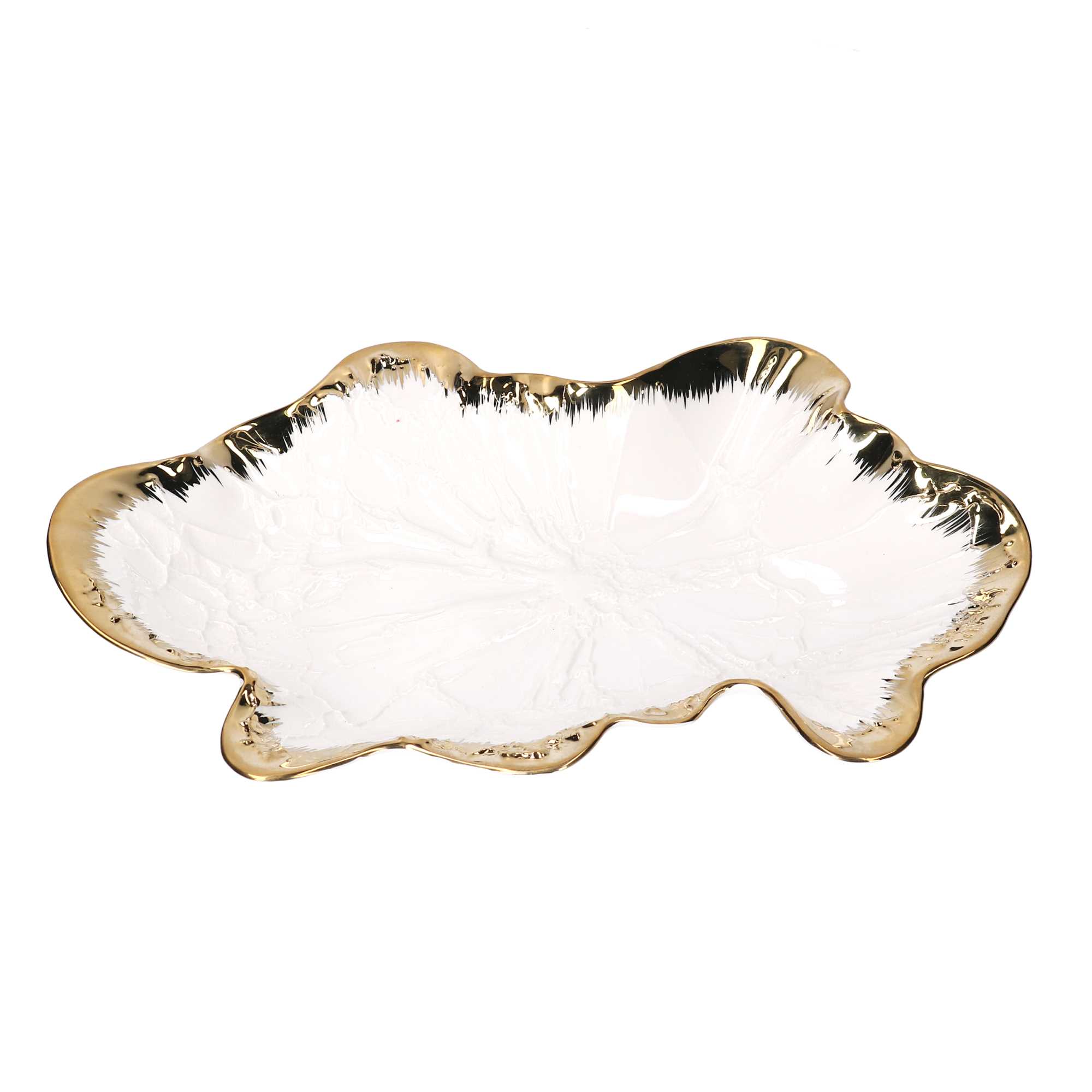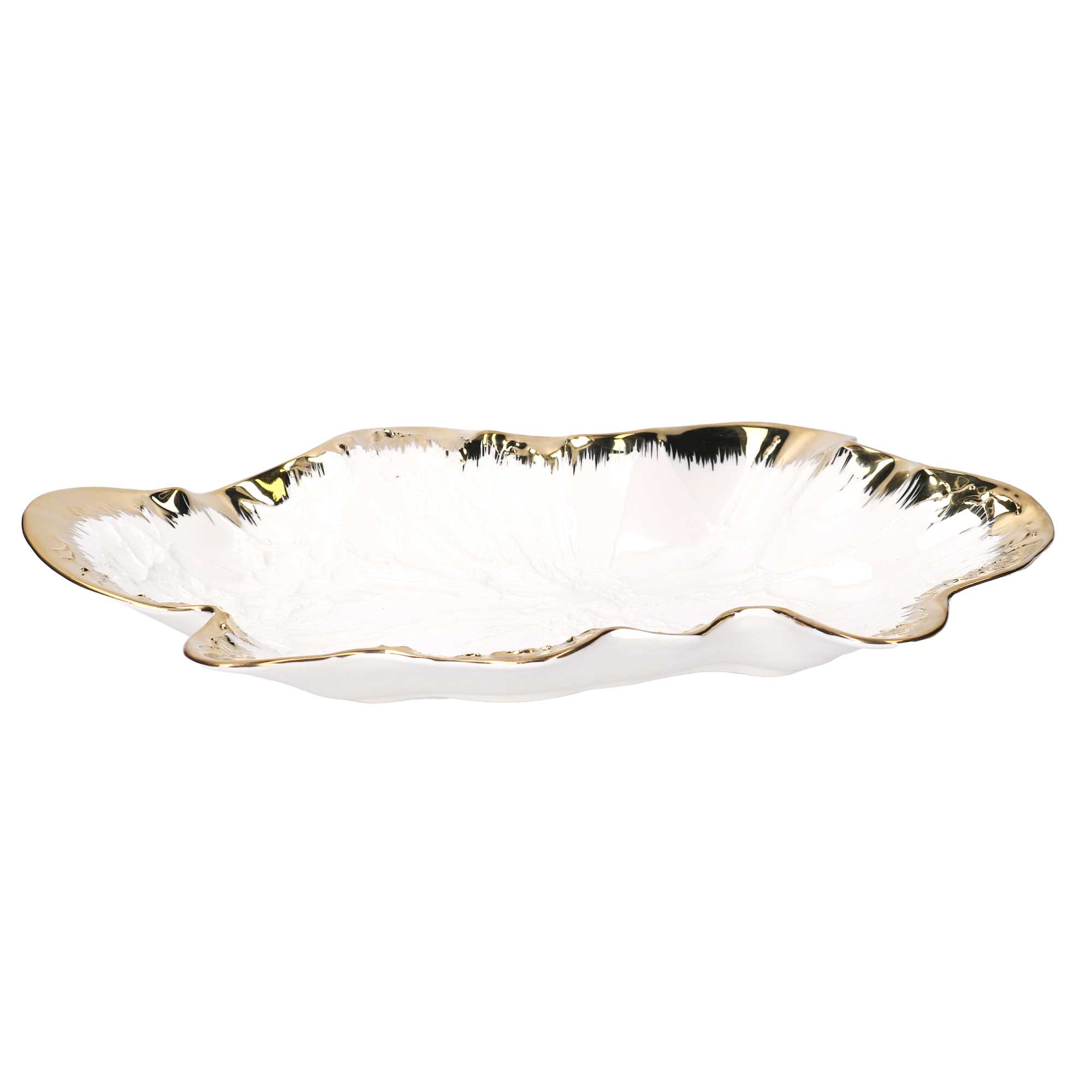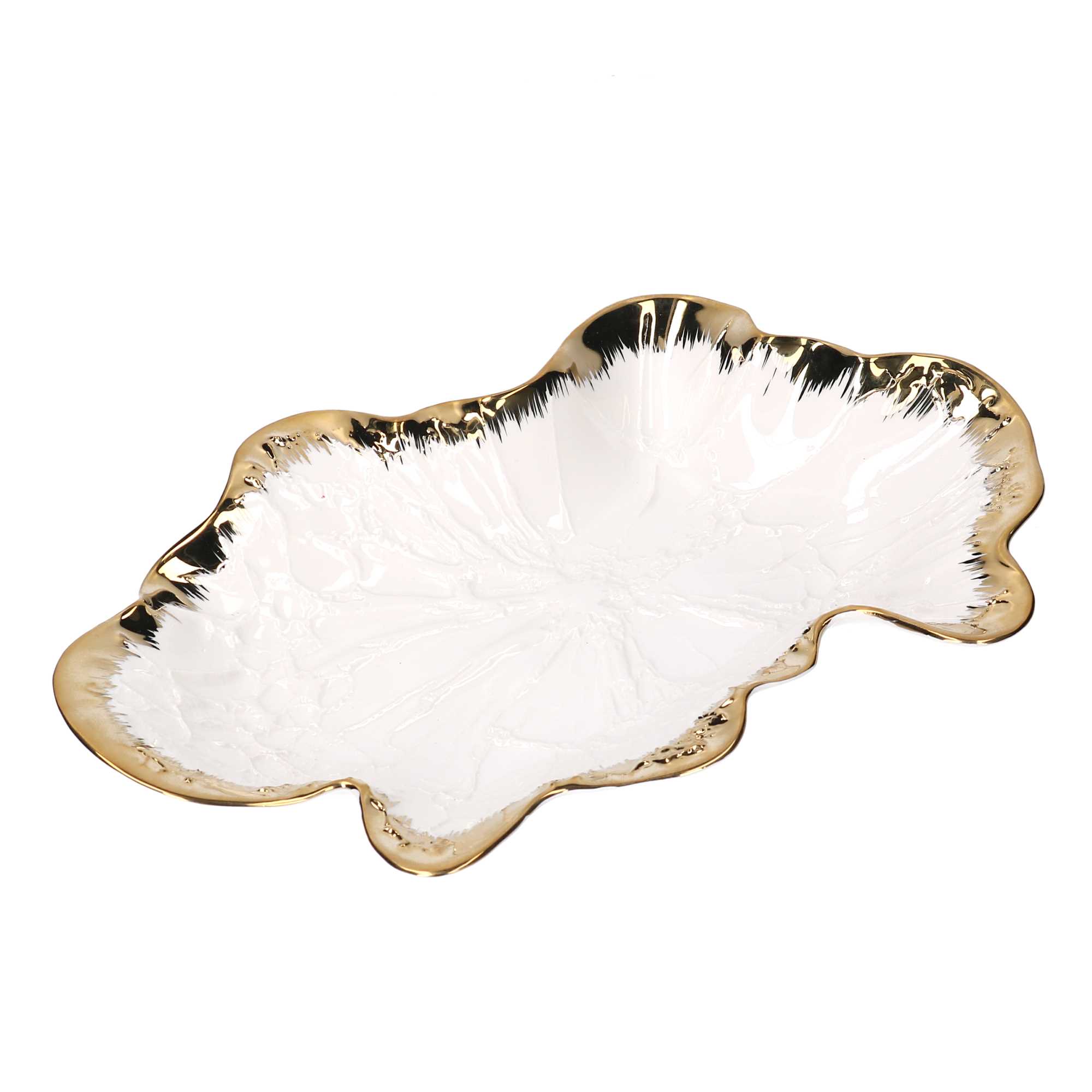 Svuotatasche ceramica foglia oro biancocm34,6×21,5h5,1