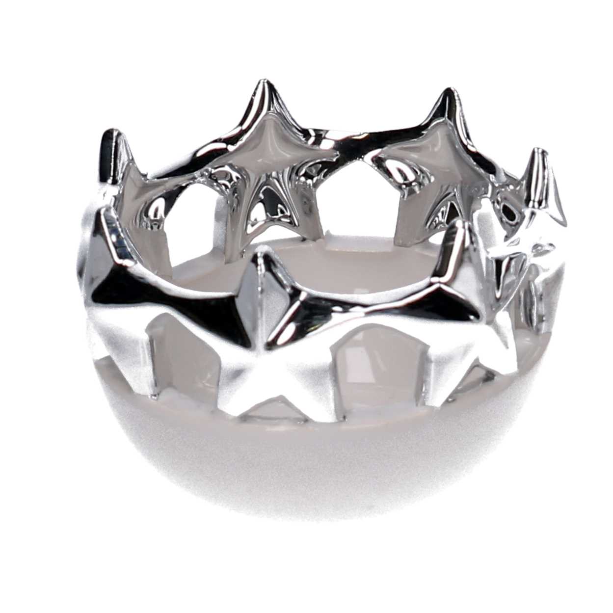 Svuotatasche ceramica stelle bianco e argento tondo cm ø10,1h7,2