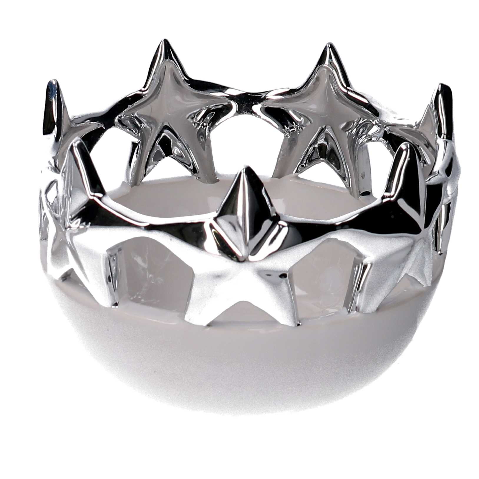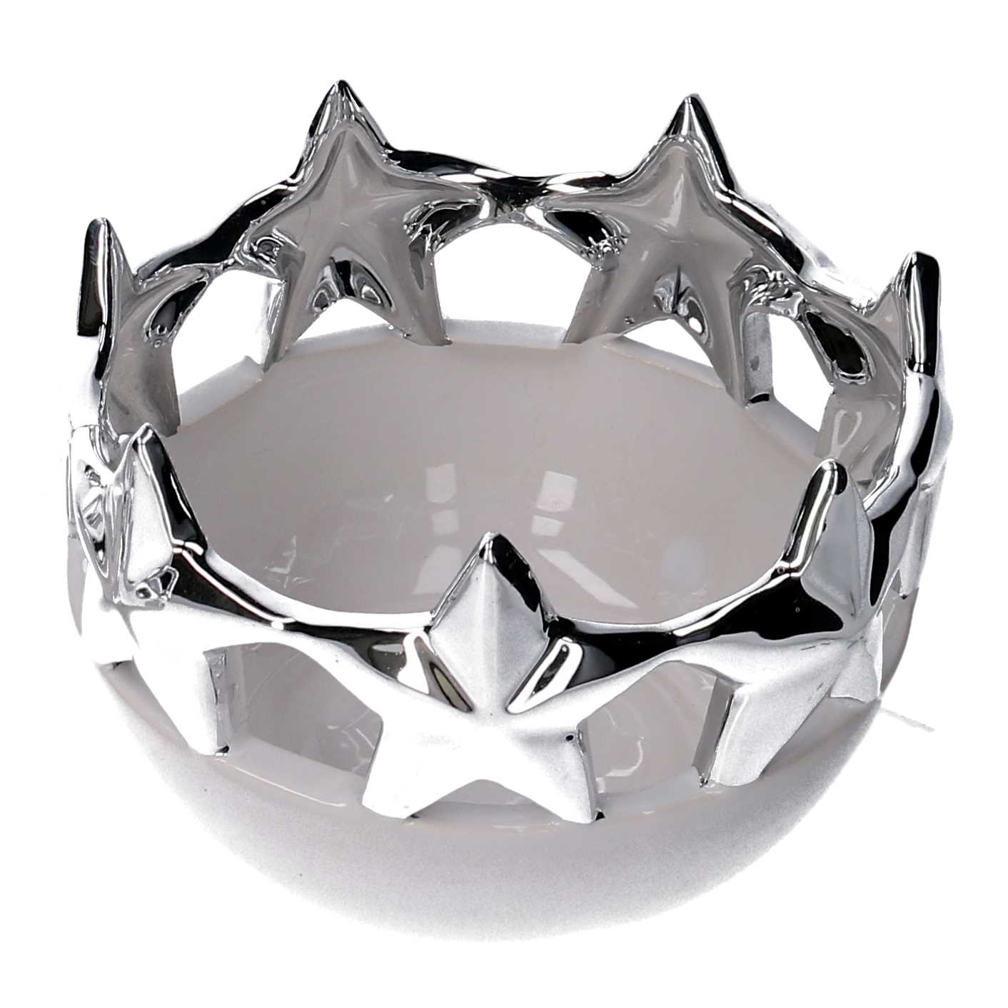 Svuotatasche ceramica stelle bianco e argento tondo cm ø14,5h10,3