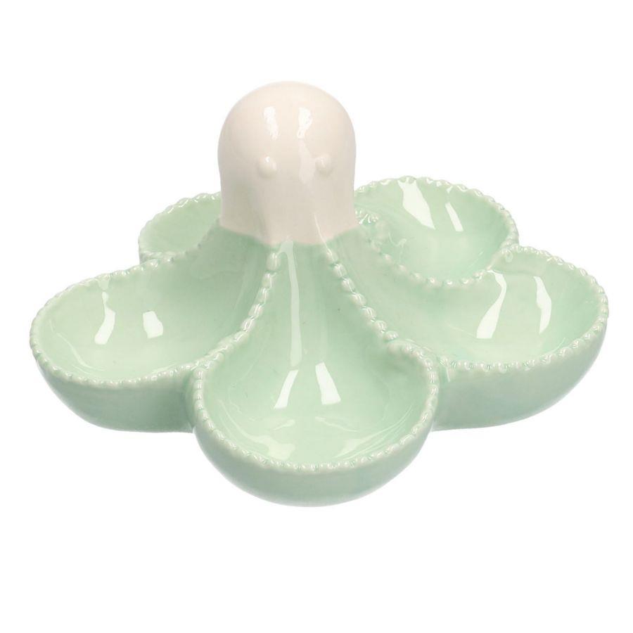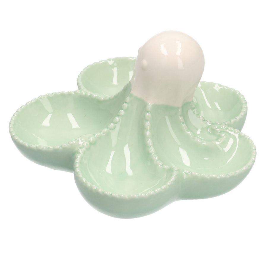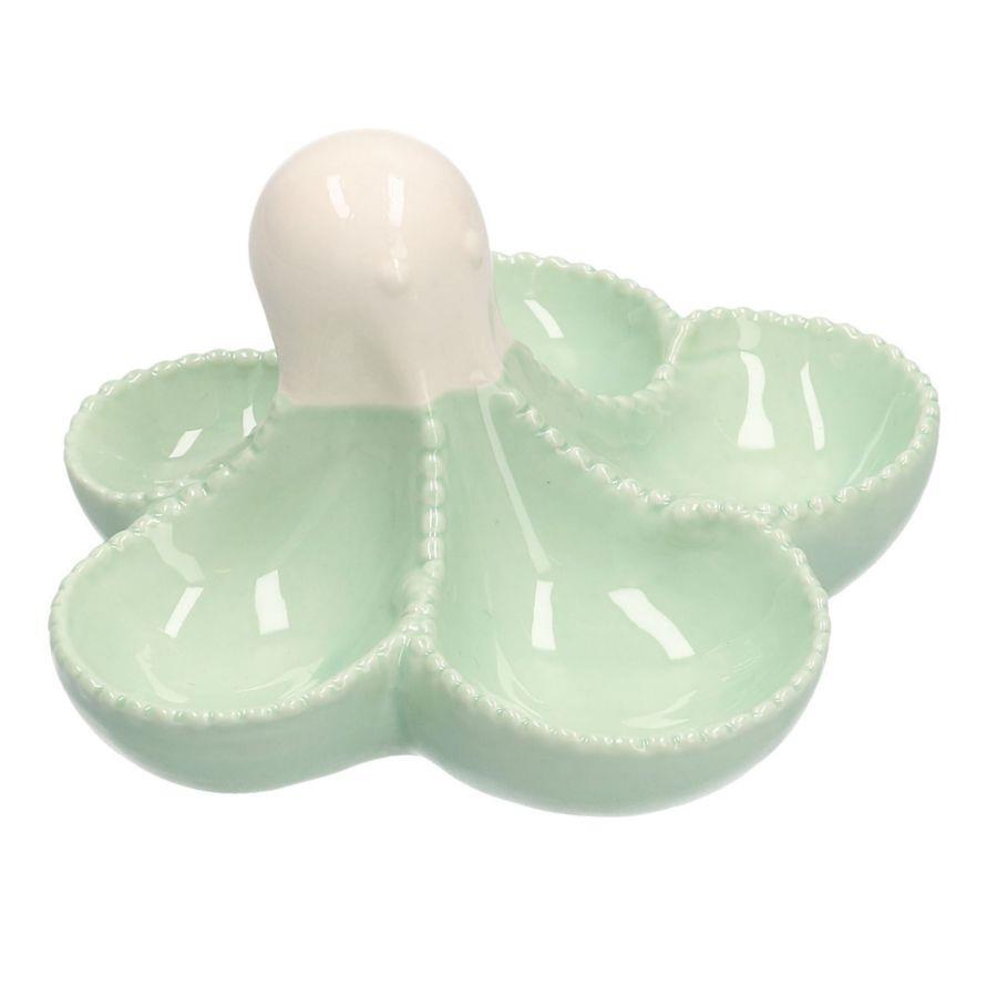 Svuotatasche mare ceramica verde acqua bianco polipo cm18,5×17,2h9,7