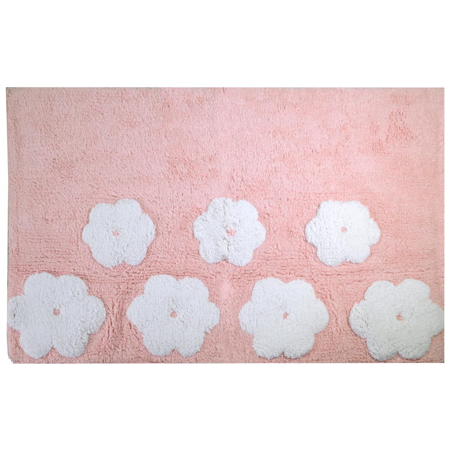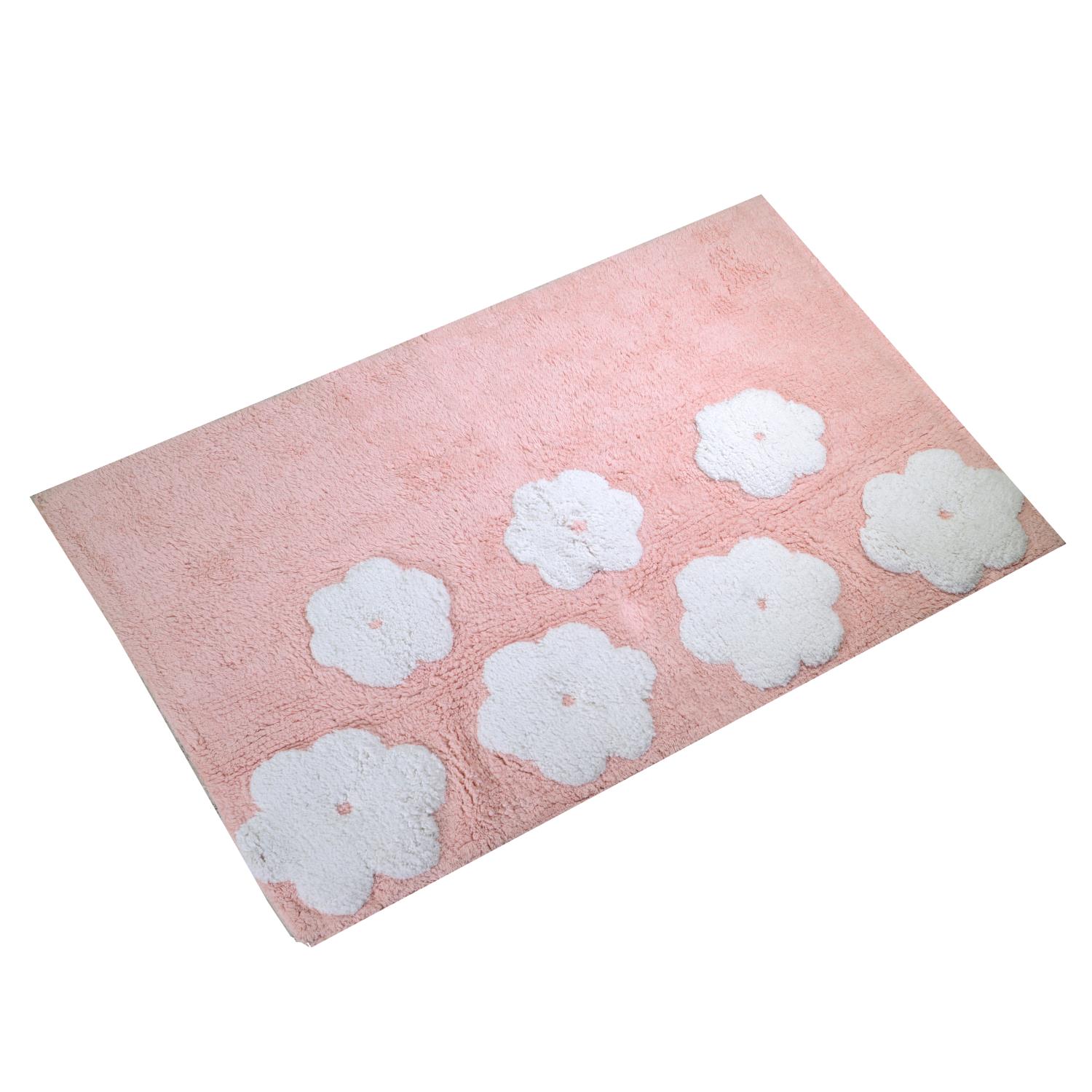 Tappetino bagno 100% cotone fiori rosa antiscivolo cm50x80x2