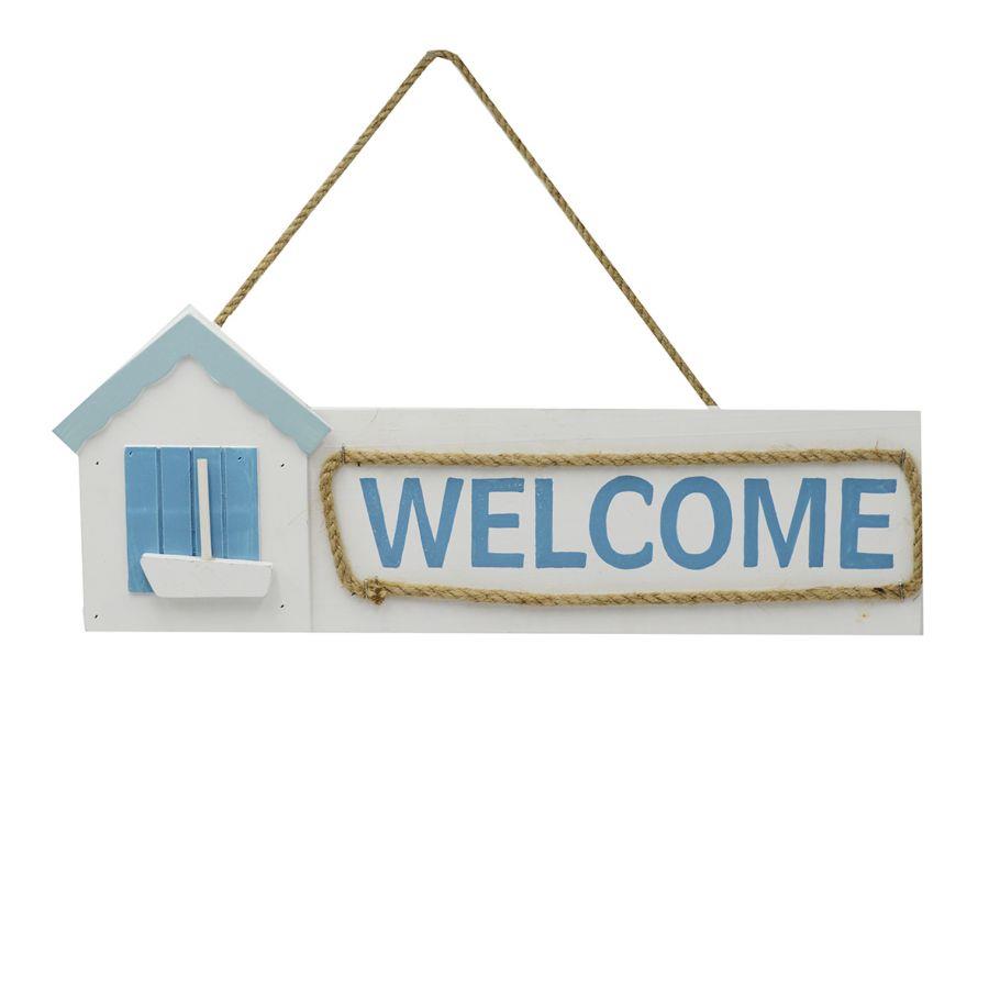 Targhetta mare legno bianco/azzurro welcome cm45,5x17x2,5