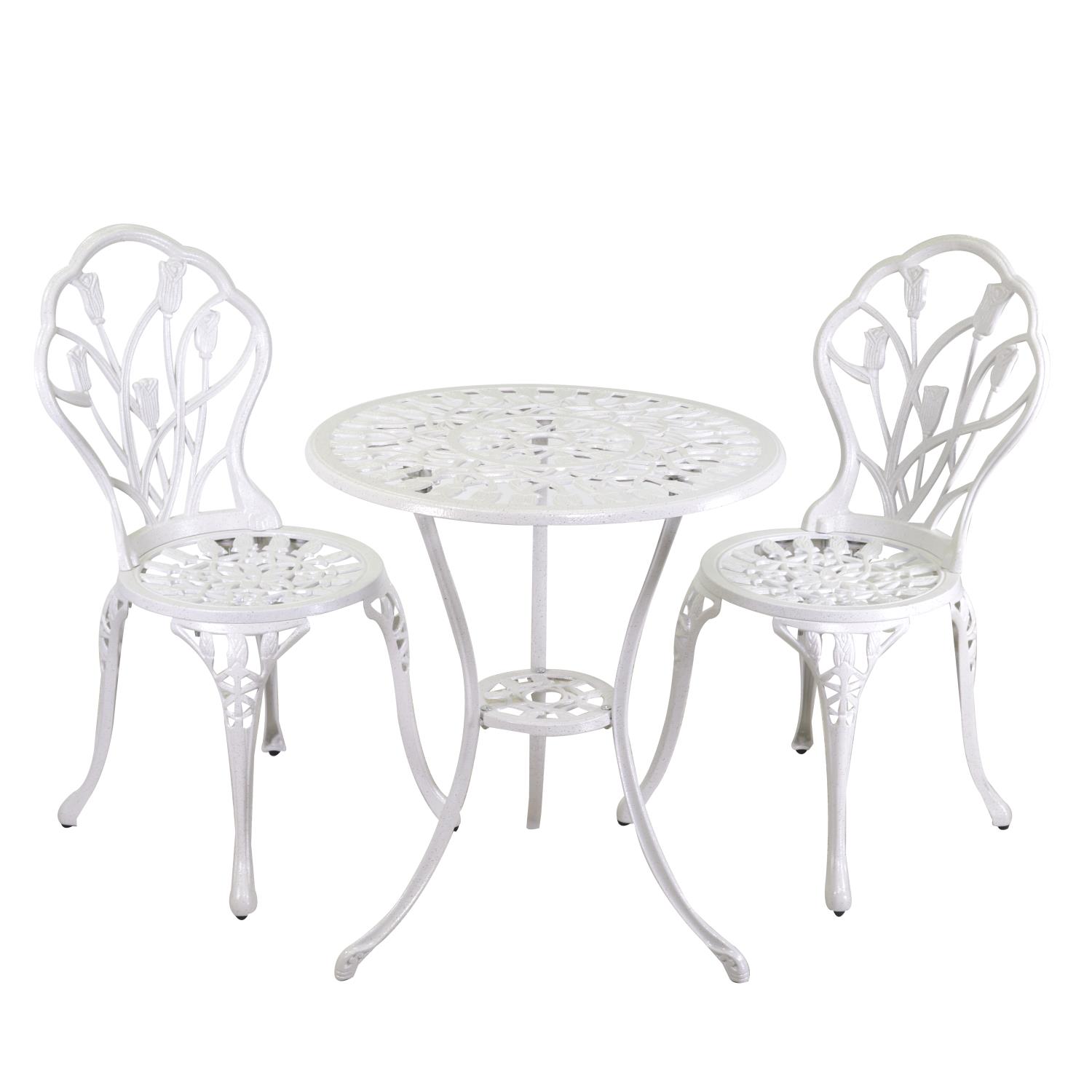 Tavolo alluminio pressofuso Parma bianco anticato tondo con 2 sedie