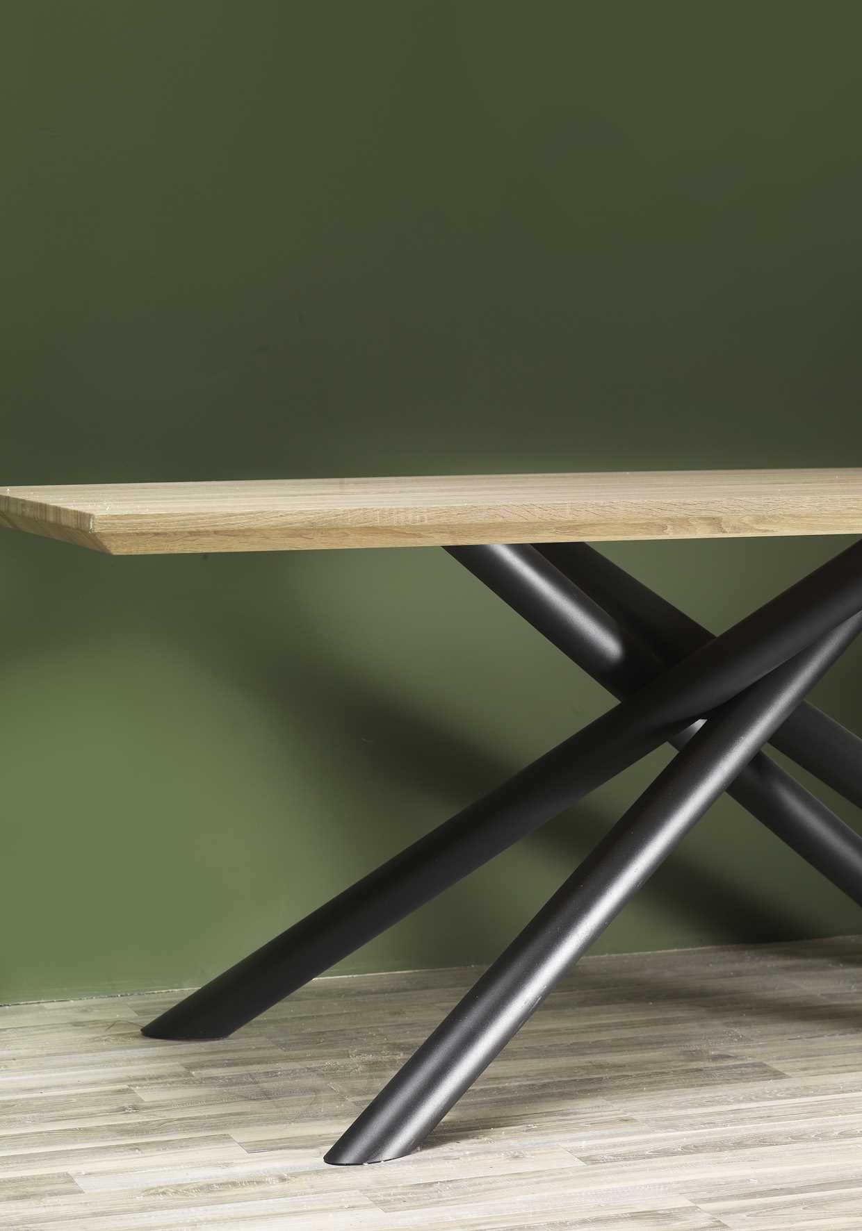 Tavolo metallo Canberra nero con top legno naturale cm180x90h75n