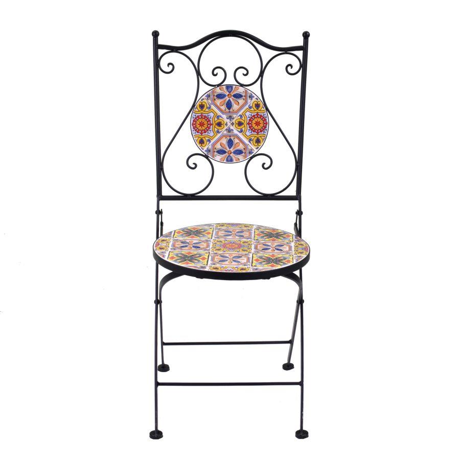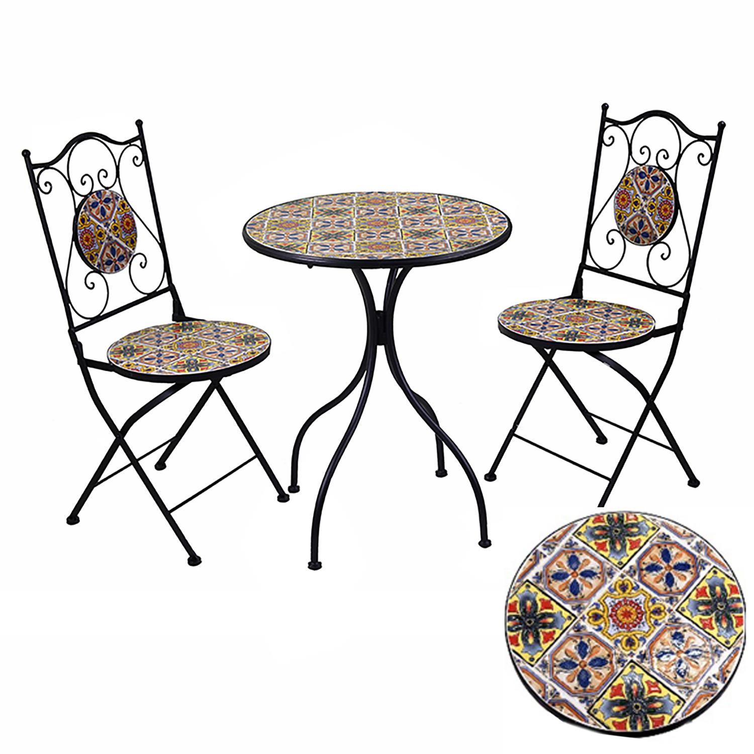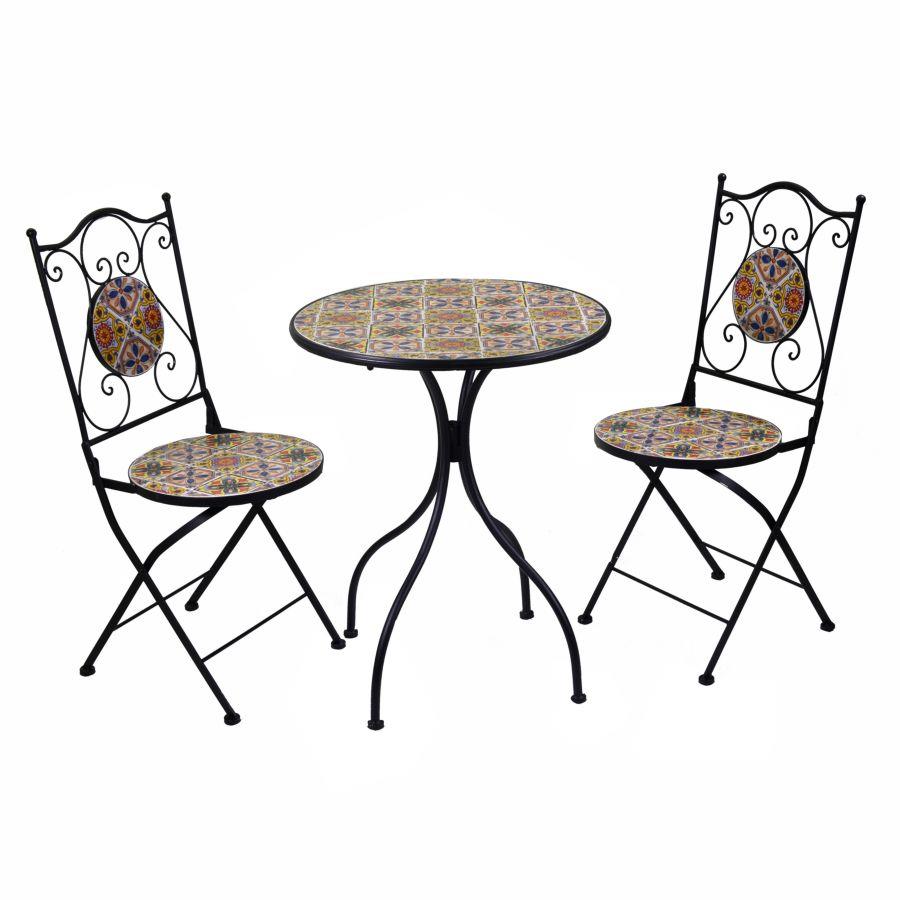 Tavolo mosaico metallo trapani tondo con 2 sedie cmø60h75n