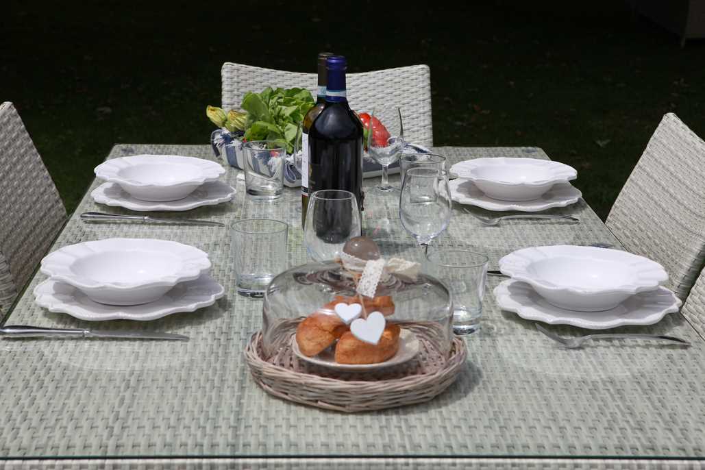 Tavolo polyrattan adila bianco ghiaccio rettangolare cm160x90h73.