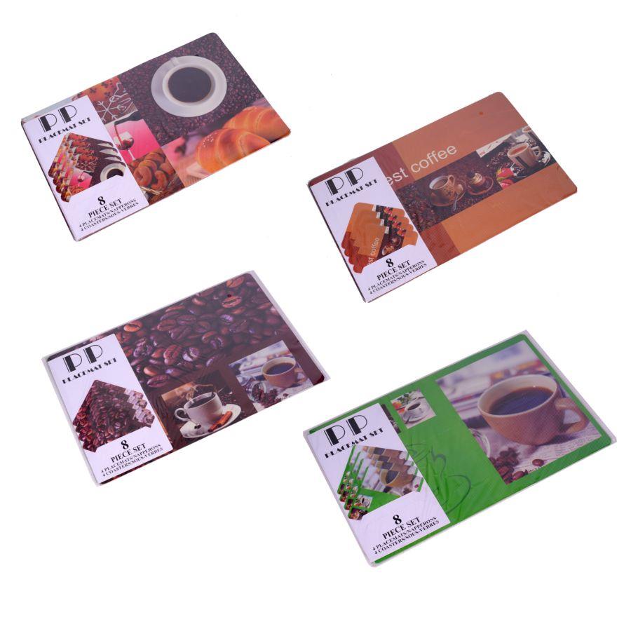 Tovaglietta set 8 pezzi con sottobicchieri caffe’ assortiti cm42xh27. n