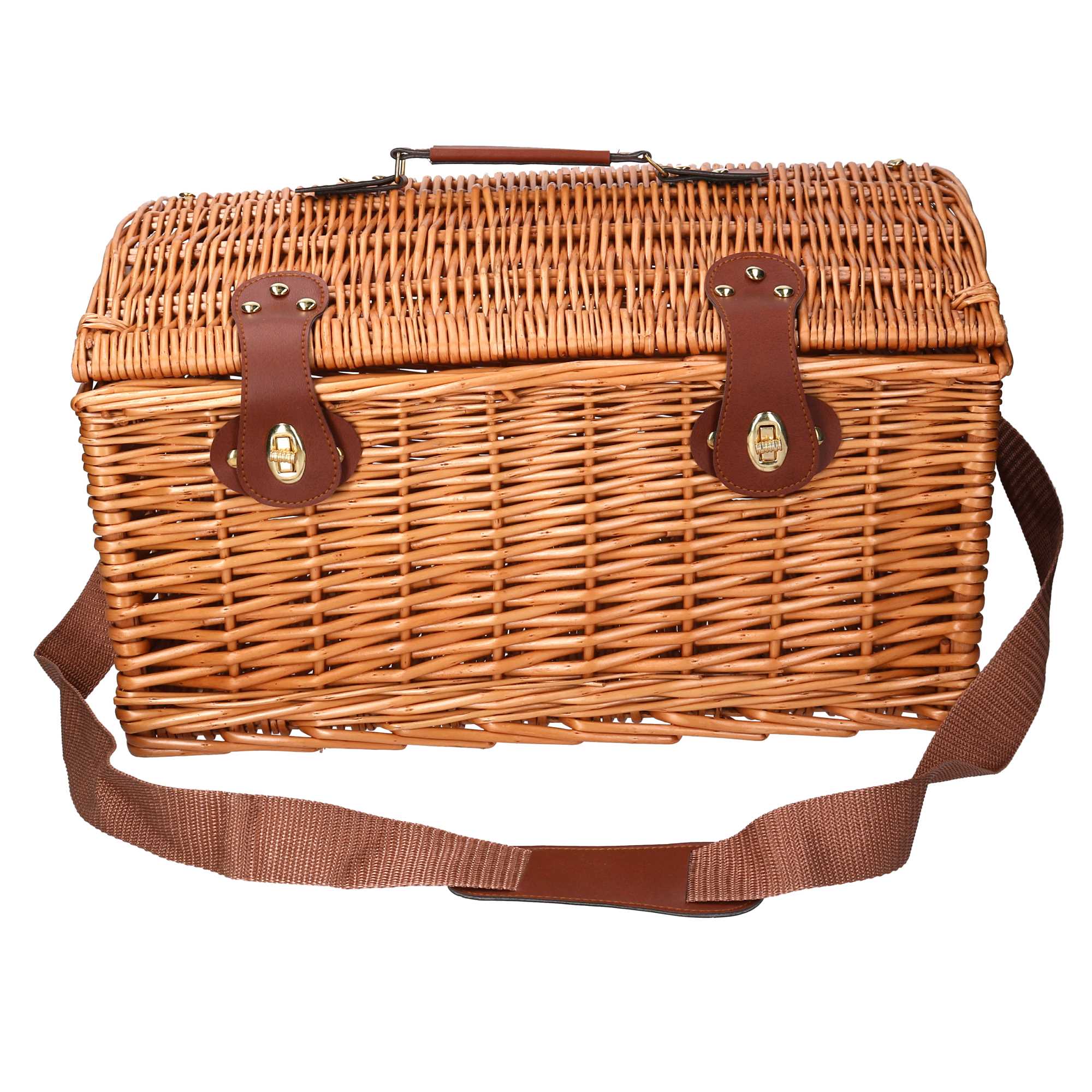 Valigia vimini naturale pic-nic bombè con tracolla rettangolare cm46x36h22/26