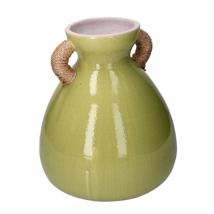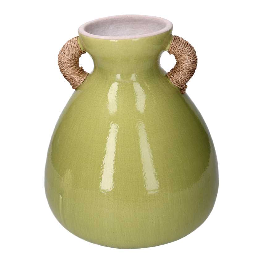 Vaso ceramica verde con maniglie cm ø28/30,5h33