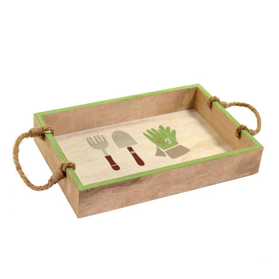 Vassoio legno bianco verde c/manici corda rettangolare cm30x20h5