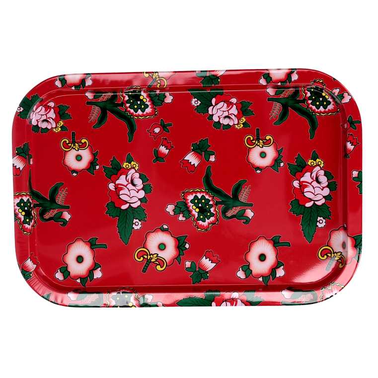 Vassoio metallo fiori rosso rettangolare cm34x23